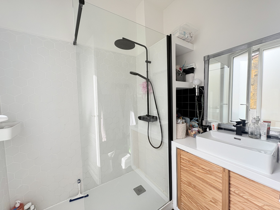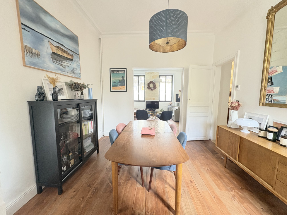 L’agence Paul D. Immobilier vous propose à la vente une charmante maison de ville dans une rue calme et recherchée du quartier Saint Genès. Le rez de chaussée propose une entrée spacieuse, une pièce de vie traversante, avec salon et salle à manger et une cuisine équipée, donnant sur une intime terrasse. À l’étage, on retrouve 3 chambres, une salle d’eau et un second wc. (possibilité de création d’un second point d’eau). La cave spacieuse et très saine est idéale pour le stockage. La maison dispose de nombreux rangements. Un stationnement couvert et sécurisé est disponible en sus de la vente. Cette maison rénovée est en très bon état et ne nécessite pas de travaux. DPE D / GES D